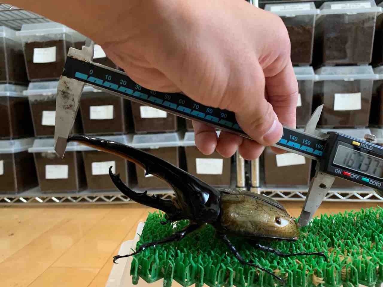 クワガタショップMDさんは、サイズや胸角率よりも、全体としてのバランスを一番に重視している印象があるので、♂のゴリ押し力に♀の美形が合わさってくれたらなぁ…と。笑
