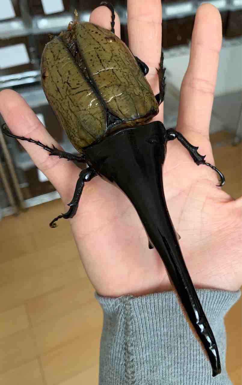 本個体の特徴としては、「全長デカい、ボディもデカい、胸角も基部から末端まで隈無く太い、突起前もおまけに太い」