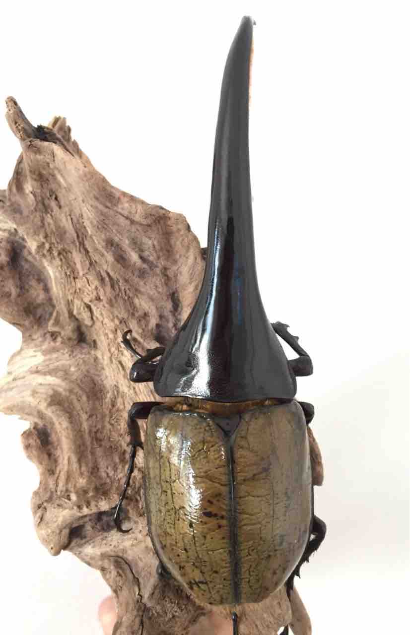 腹部幅(測り忘れ!!)が大きく、基部も強大なため、ボディに大きさが出たように見えますが、実は角も結構長いよーって感じで、